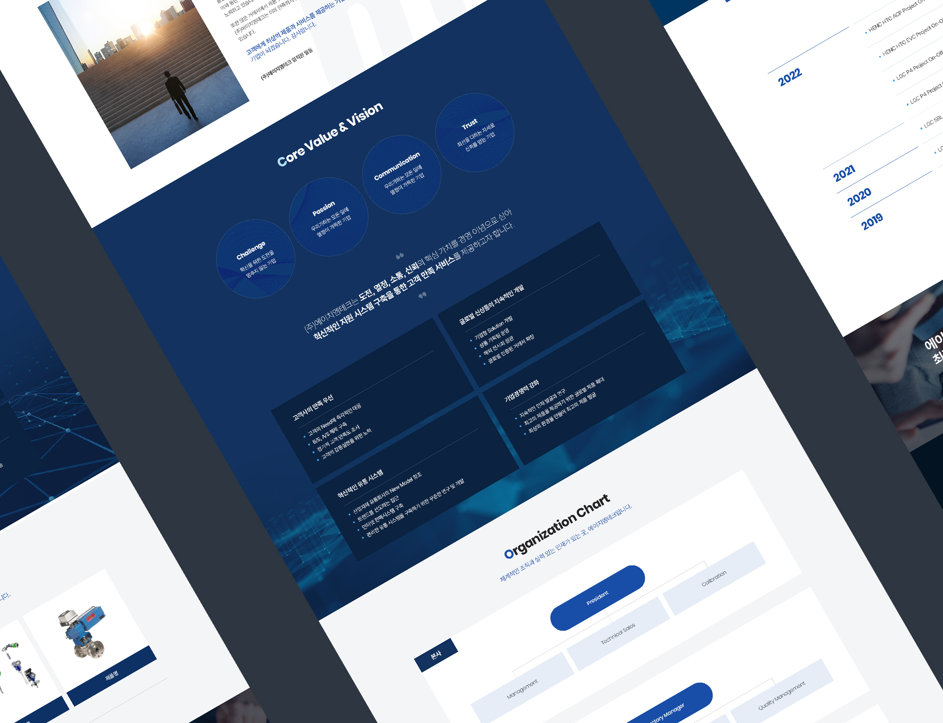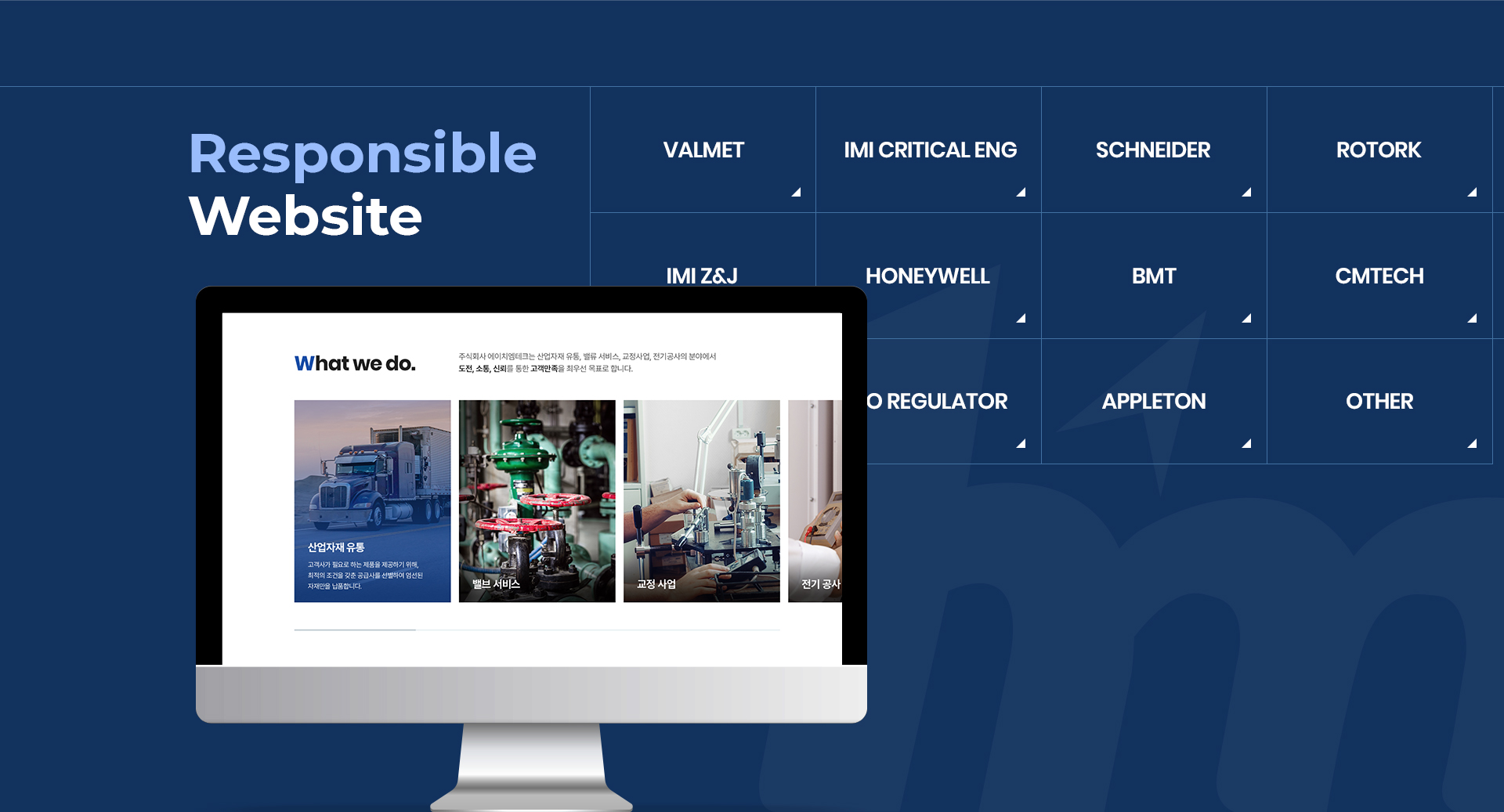 기업의 아이덴티티를 잘 나타내고 있으며 브랜드 별로 정리된 취급 상품 페이지로 사용자 편의를 제공합니다.