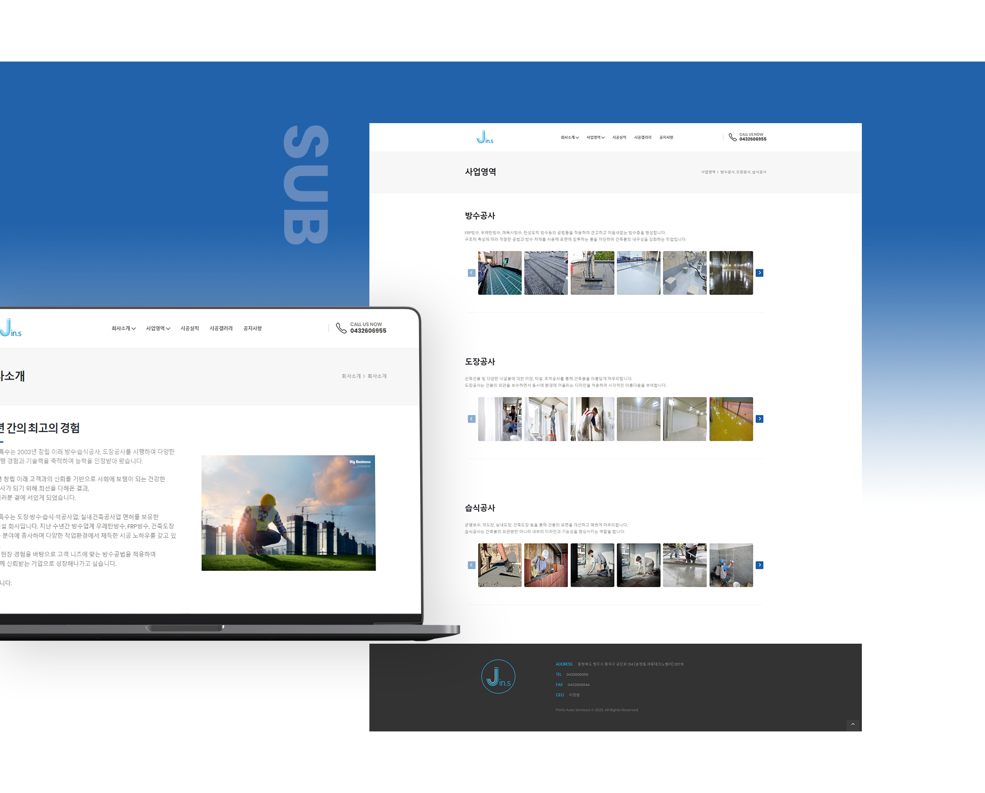 공사 전문 회사 홈페이지다 보니 이미지를 중점적으로 배치하고
