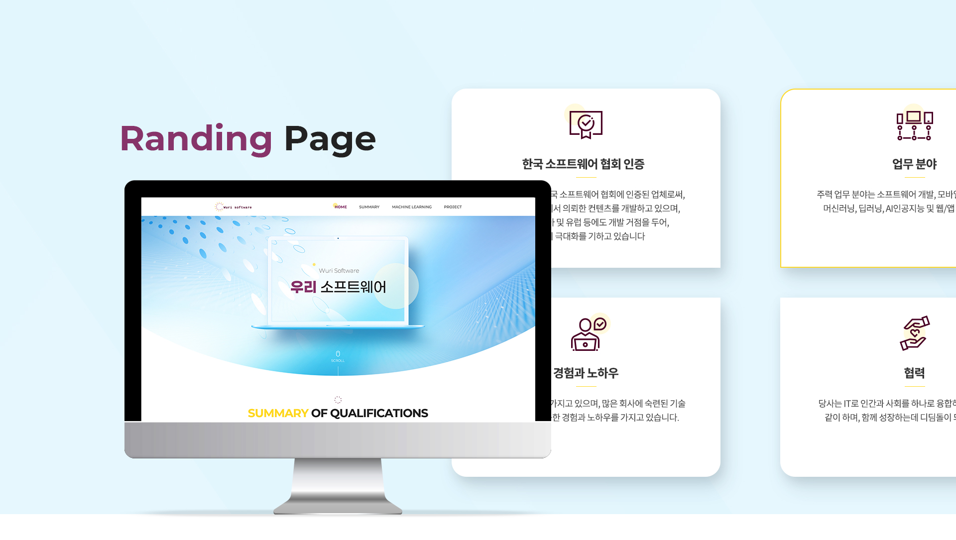 사용자에게 회사의 비즈니스를 전달합니다