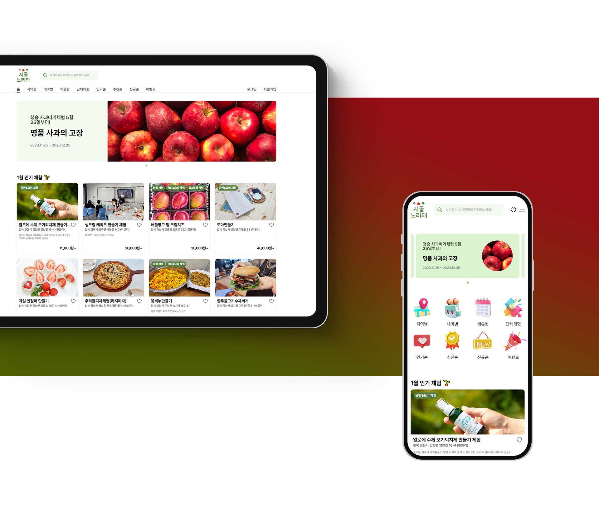 이미지와 텍스트의 배치로 각종 인기체험을 확인