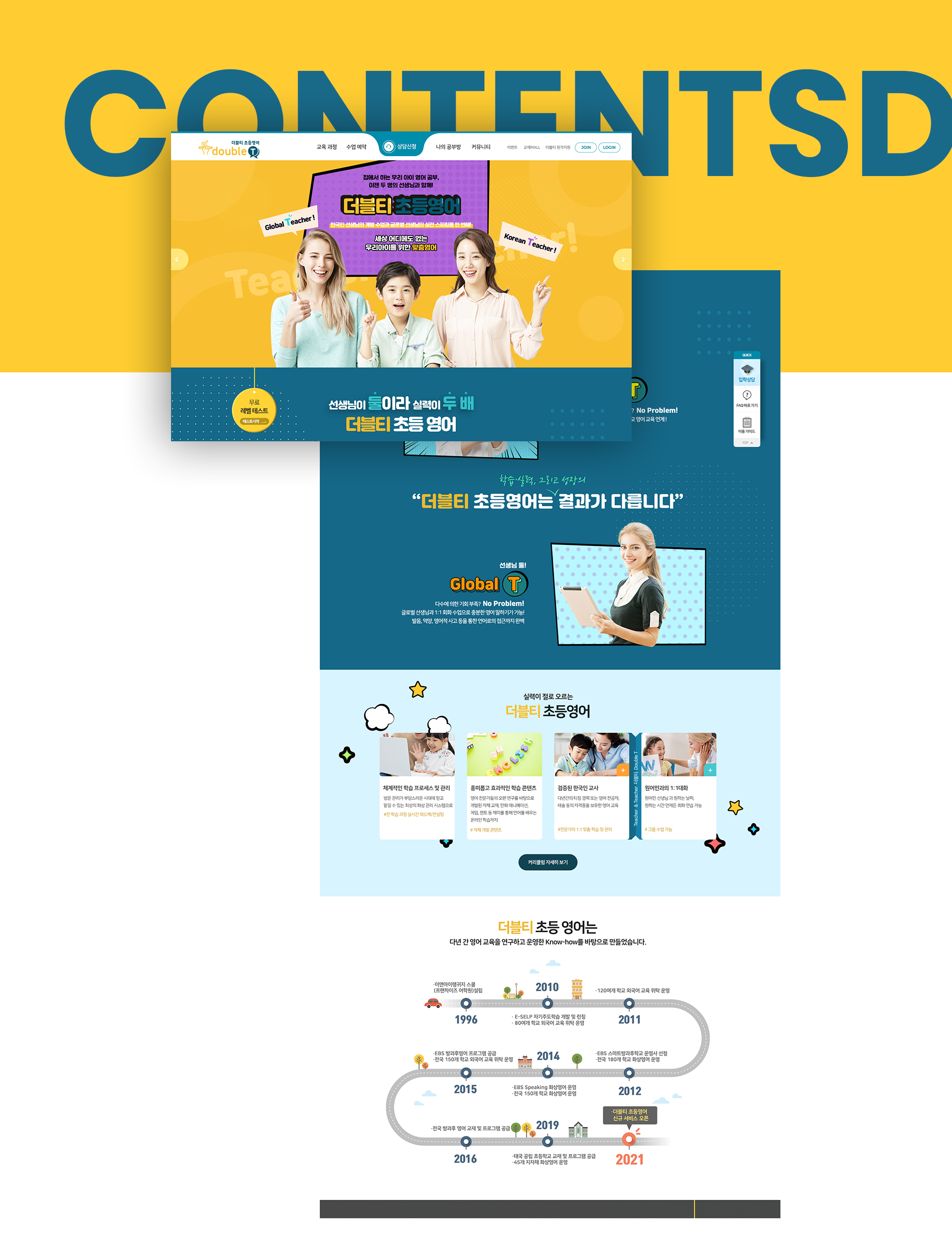 영어학습과정 및 커리큘럼을 소개하는 학원소개를 비롯하여