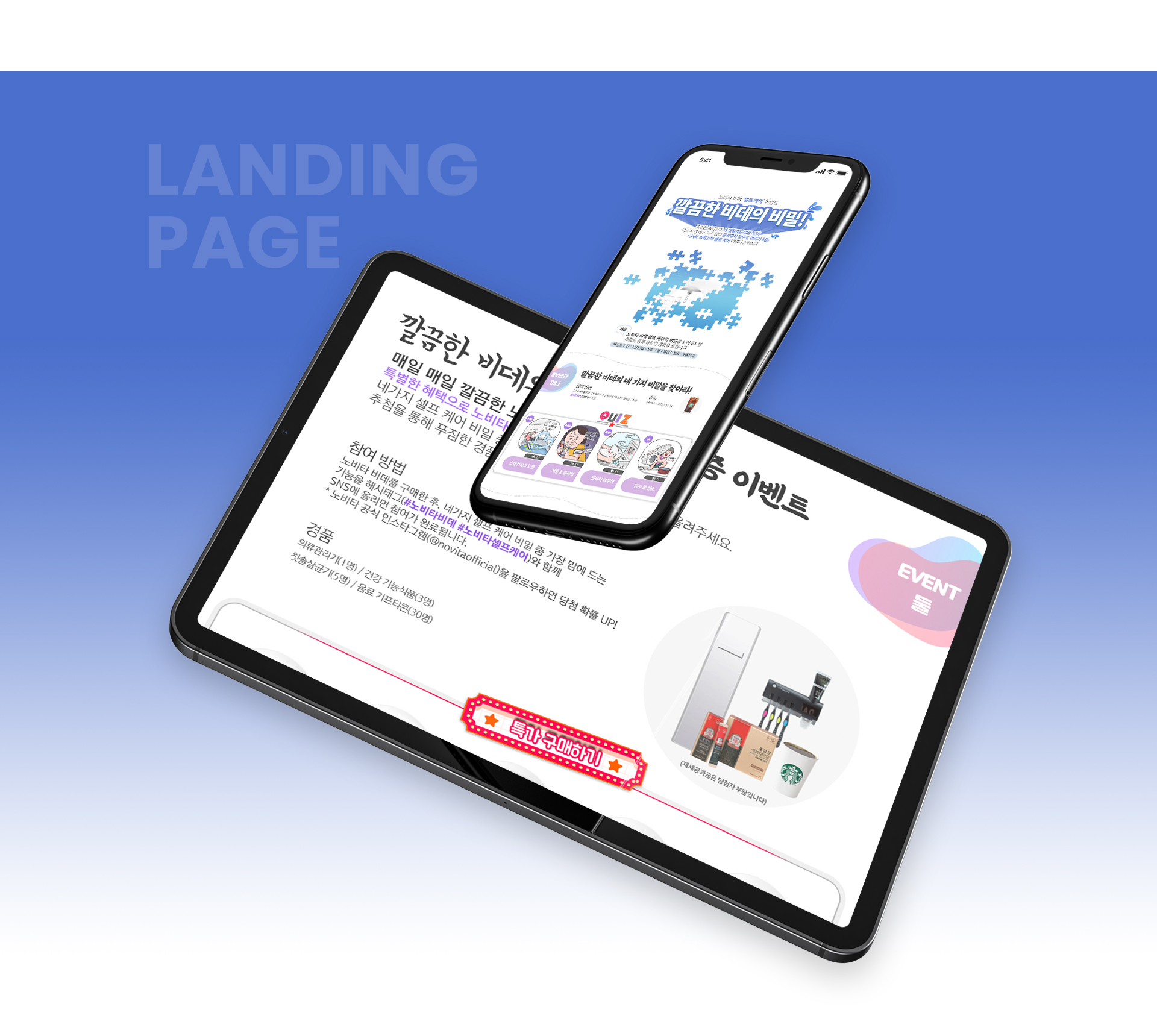 경품 이벤트 페이지로 단순한 경품 행사가 아닌 일러스트를 활용