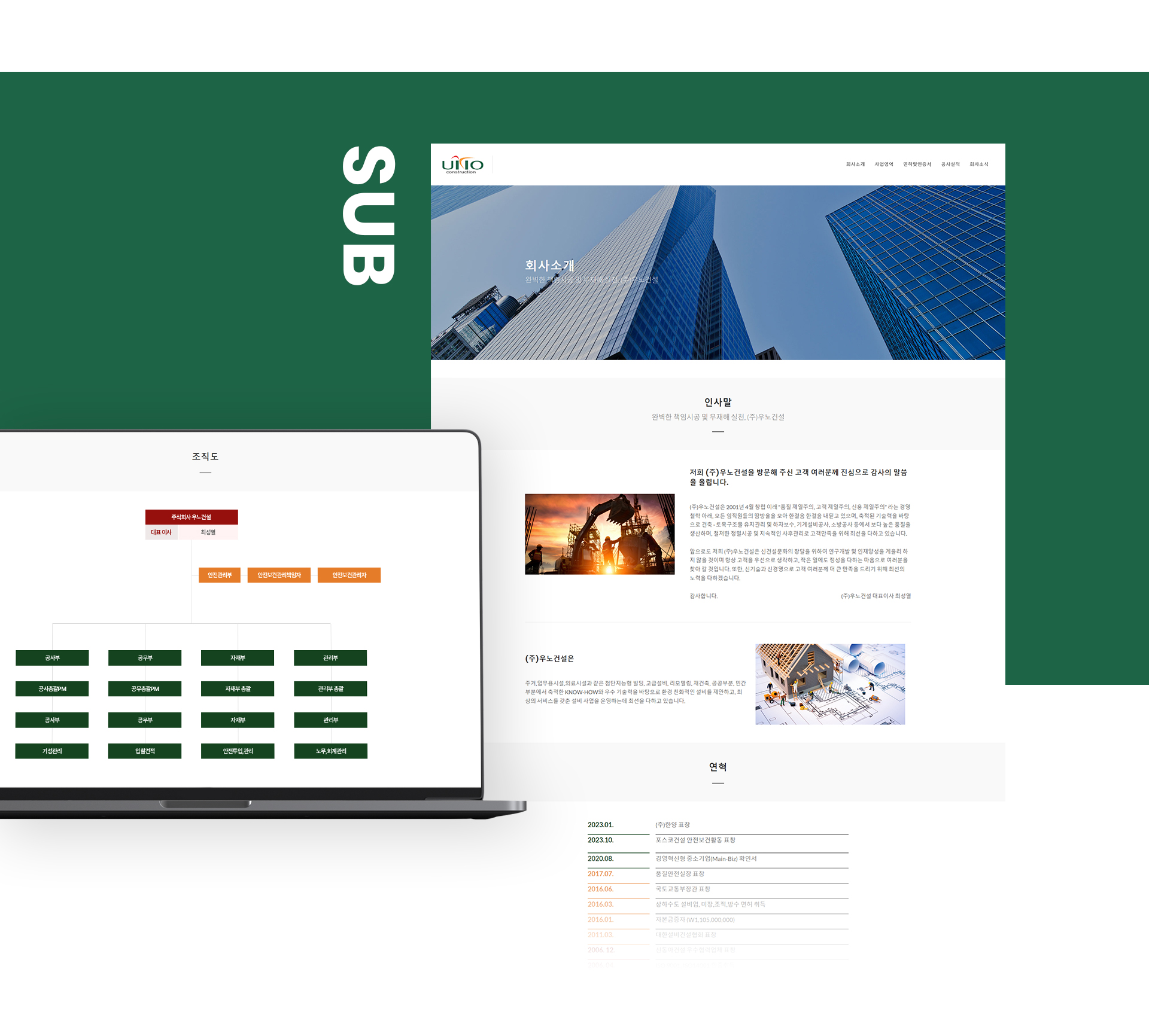 우노건설 반응형 기업 홈페이지제작