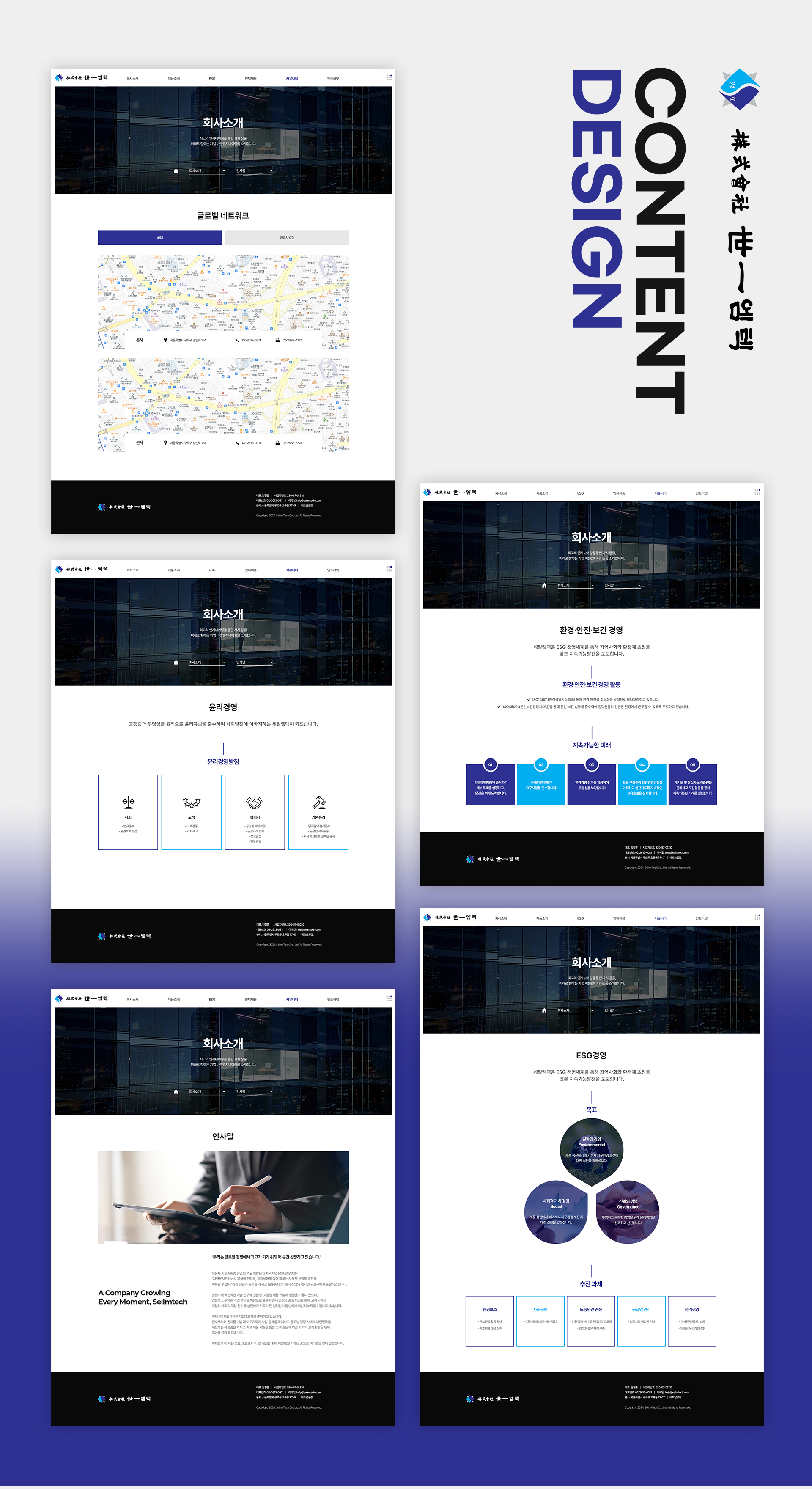 간결한 레이아웃과 군더더기 없는 콘텐츠로 구성된 기업 소개 사이트입니다.