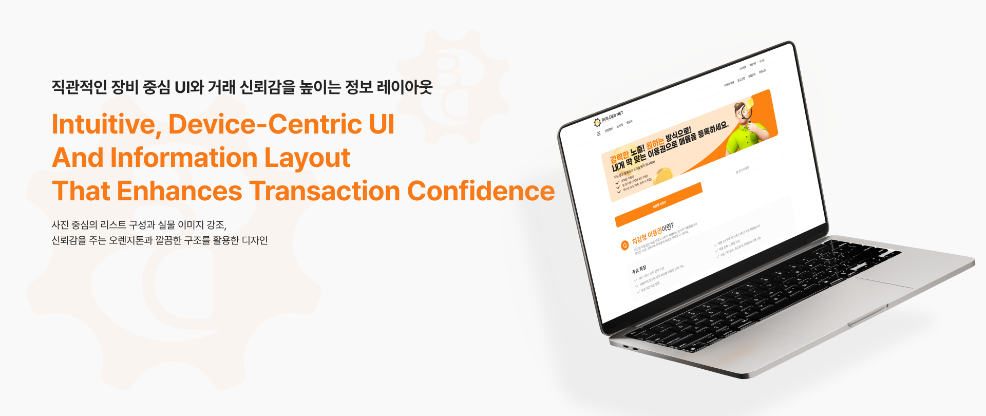 검색 기능과 장비 인증 시스템을 통해 구매자 신뢰를 확보하고,