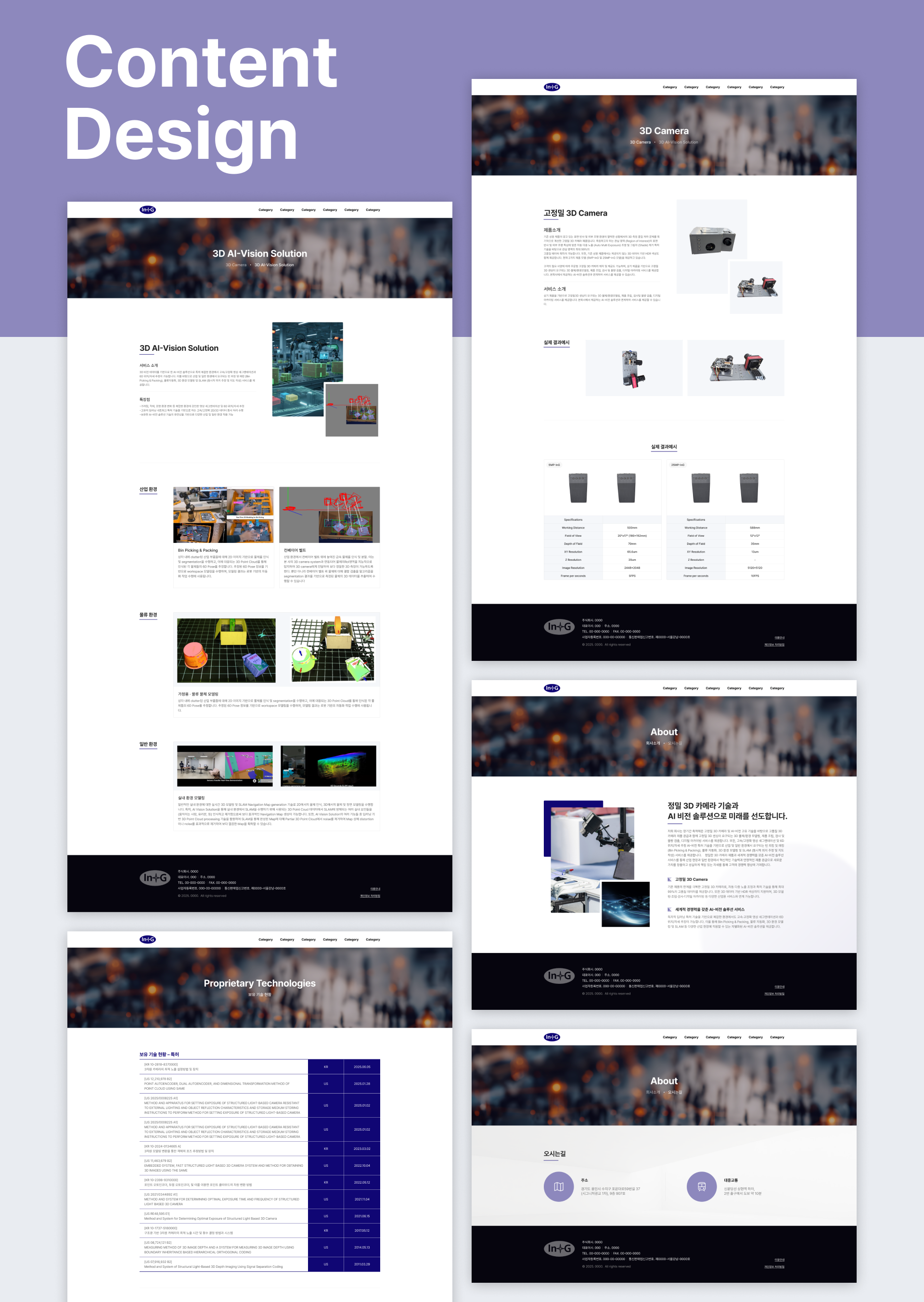 불필요한 장식을 최소화하고 콘텐츠 간 간격과 시선 흐름을 고려한 설계로 기업의 기술력을 깔끔하게 전달할 수 있도록 구현했습니다.