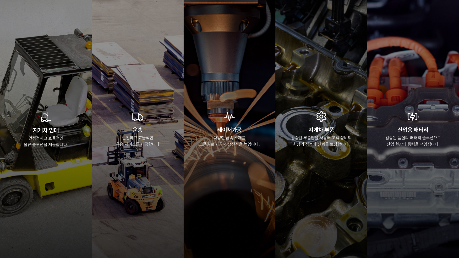 지게차 산업의 현장성과 역동성을 표현하기 위해 실제 현장 이미지를 중심으로 한 리얼리티 비주얼을 사용했습니다.
