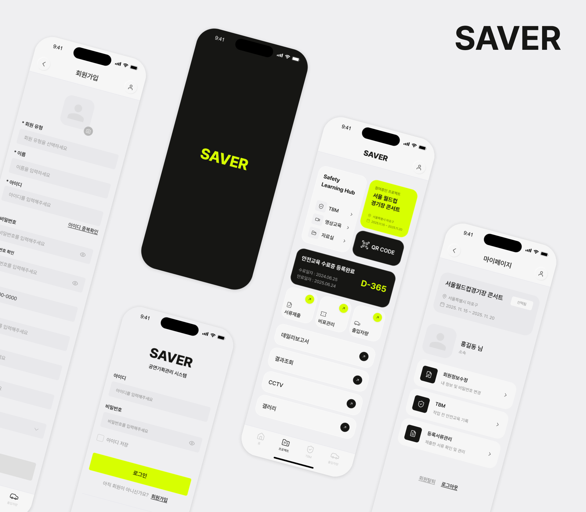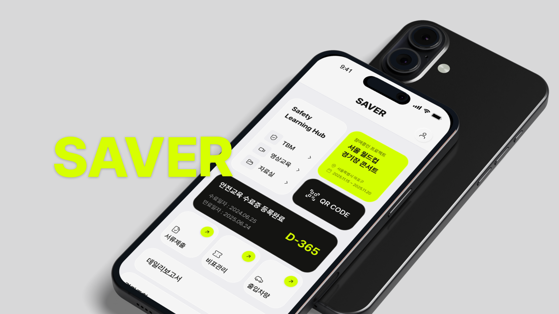 형광에 가까운 라임 계열 포인트 컬러를 사용해 핵심 정보와 행동