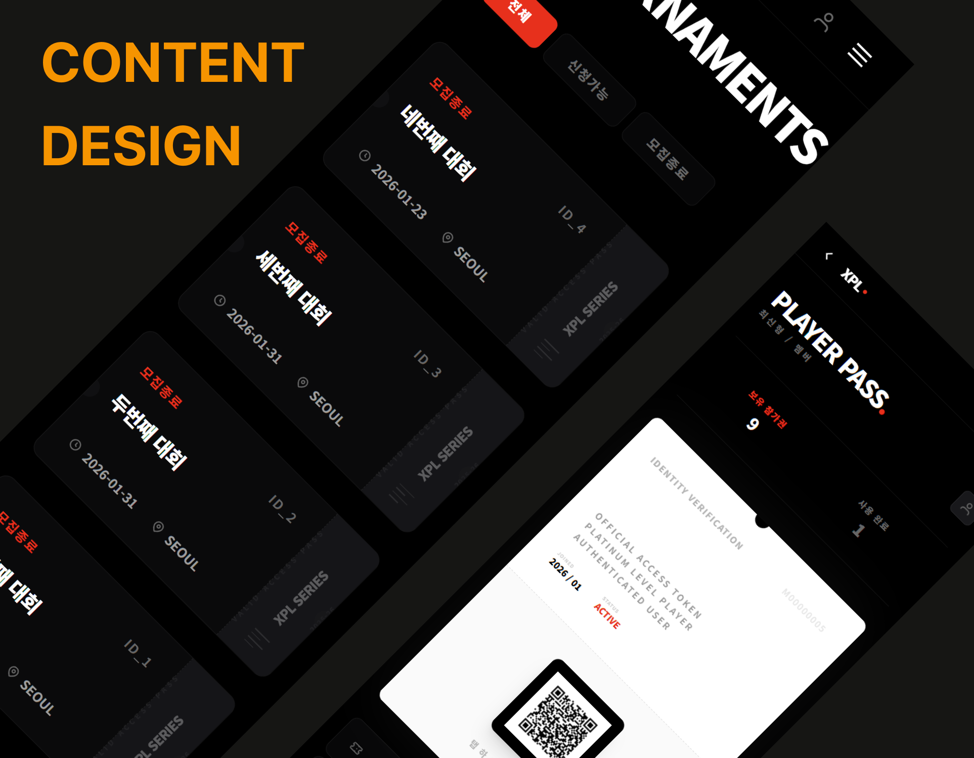 브랜드 컬러와 대형 비주얼을 전면에 배치하여 XPL의 정체성과 서비스 콘셉트를 직관적으로 전달했습니다.