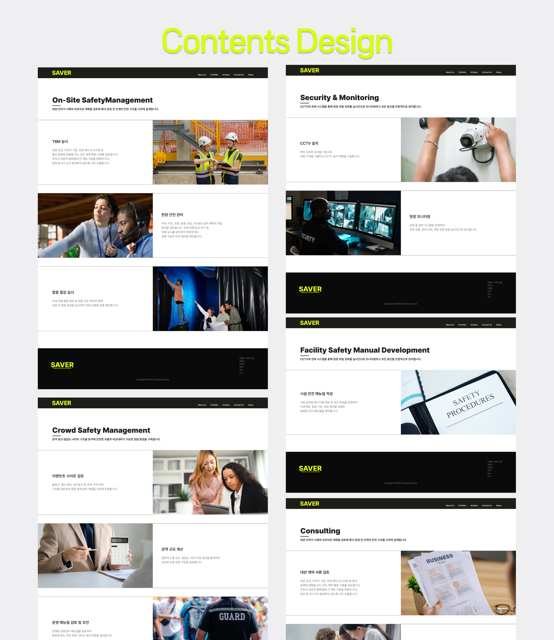 서비스별 내용을 명확하게 구분하여 구성했습니다.
