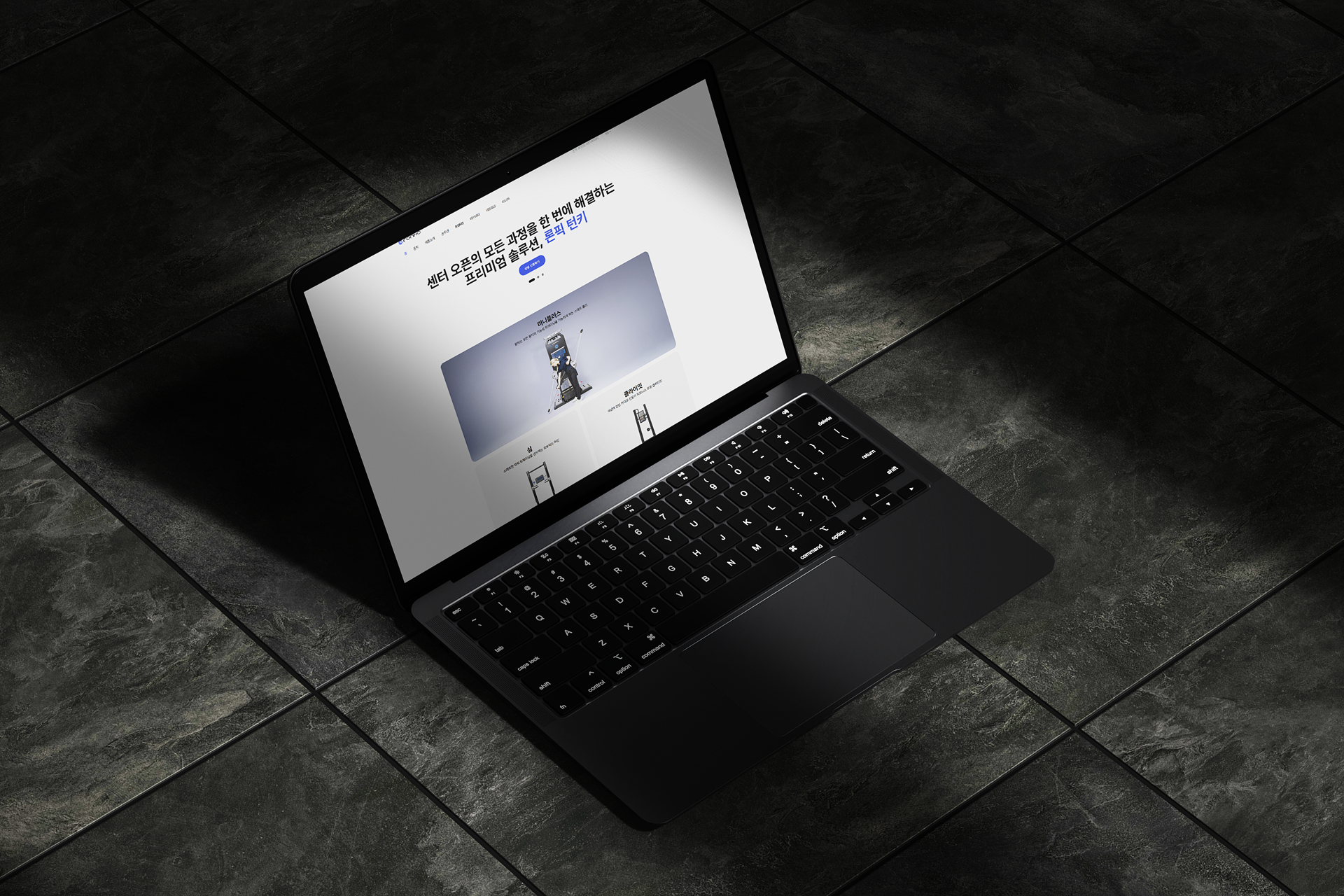 센터 오픈부터 운영까지 전 과정을 아우르는 전문성을 메인 카피와 세련된 비주얼로 배치하여 방문자의 신뢰도를 높였습니다.