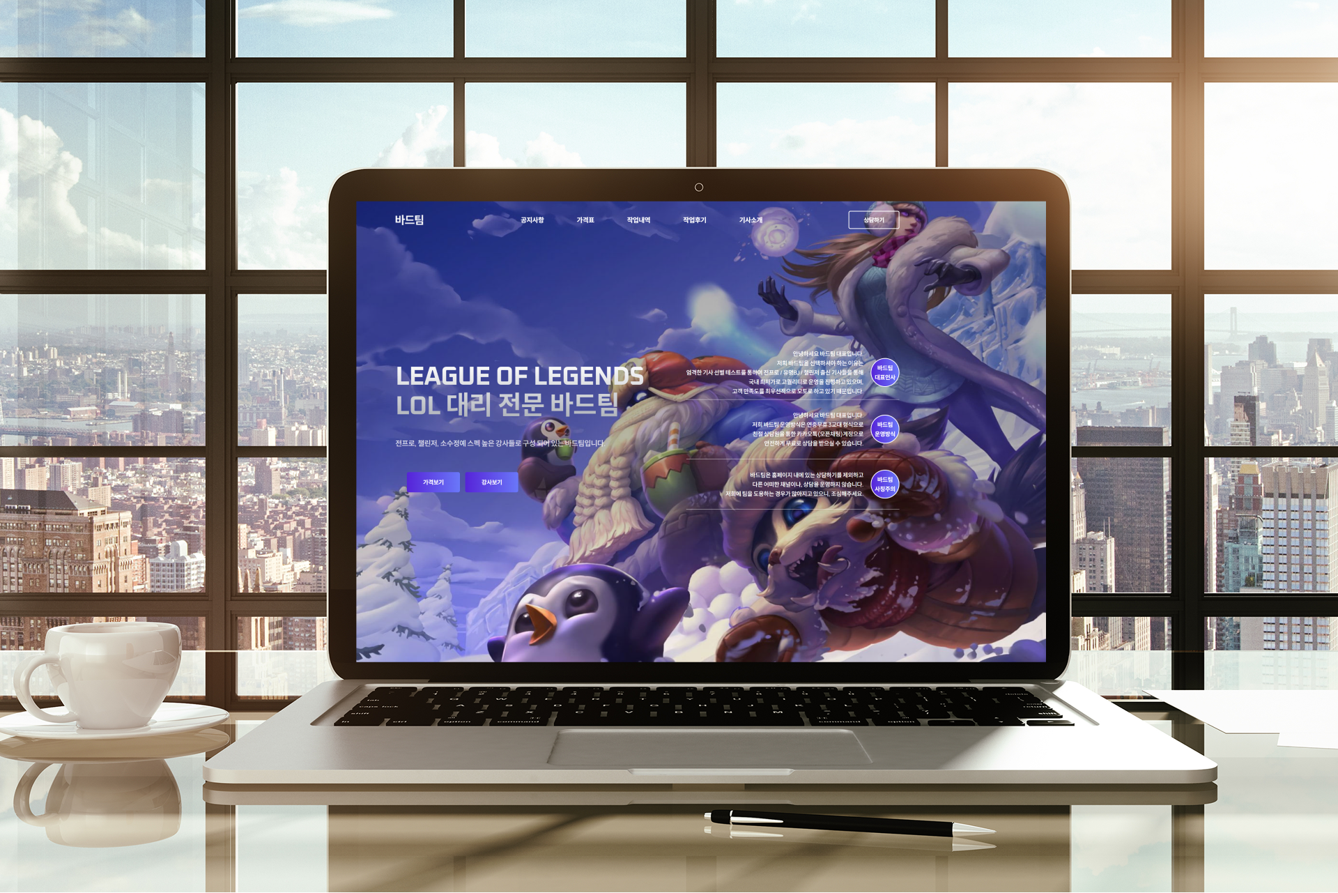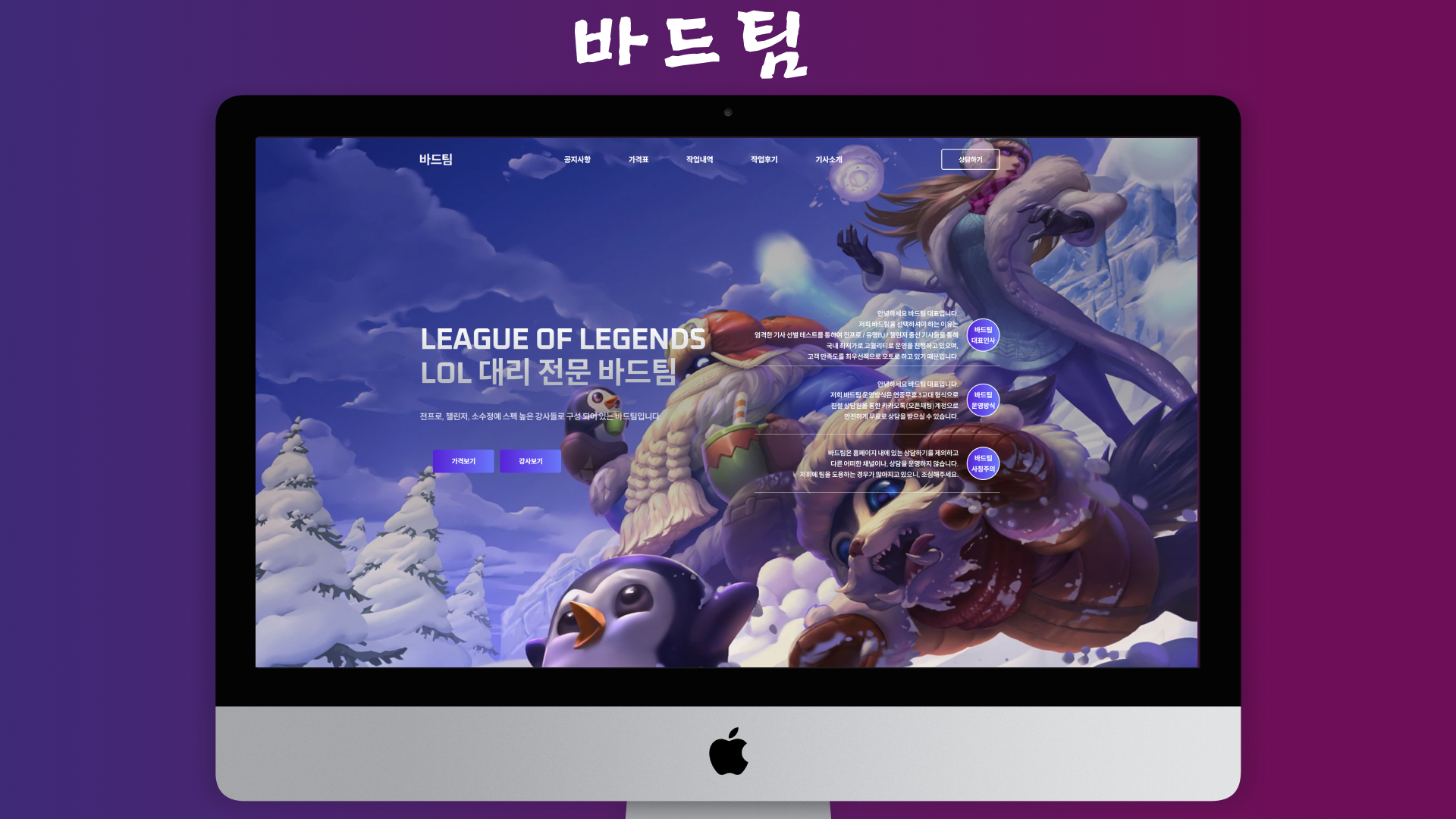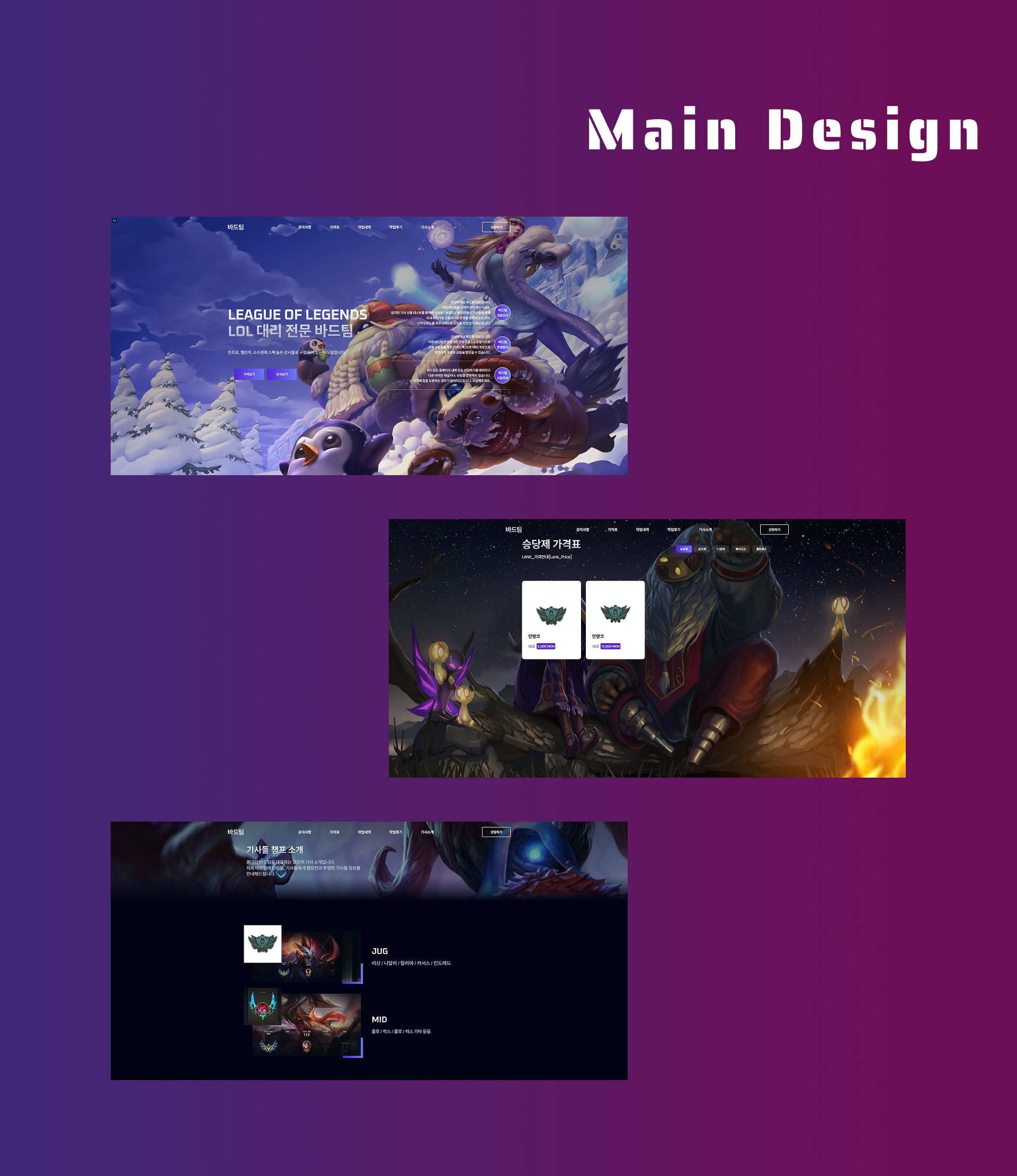 메인, 가격 안내, 기사 소개 페이지를 유기적으로 연결하여